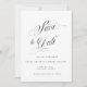 This elegant invitation combines an ornate script rendering of Save the Date along with a traditional style font. Easy to personalise with your wedding details and add a sweet photo to the back. Beautiful!