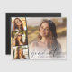 Elegant graduation announcement magnetic card featuring the graduate's photo overlayed with a strip of three smaller square photos and "Graduate" in a modern script and their name and class year in simple typography.