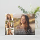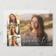 Elegant and modern graduation announcement and party invitation featuring the graduate's photo overlayed with a strip of three smaller square photos, "thank you" in a chic thin white script, and their name and class year in simple white typography. On the reverse side add the graduation party details.