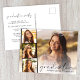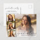 Elegant graduation announcement and party invitation postcard featuring the graduate's photo overlayed with a strip of three smaller square photos and "Graduate" in a modern script and their name and class year in simple typography. On the reverse side, add the party details.
