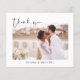 Express your heartfelt gratitude in timeless style with this Elegant Script Photo Wedding Thank You Card. Featuring refined calligraphy, a full photo layout, and minimalistic design elements, this card is the perfect way to thank your guests while showcasing a cherished moment from your big day. Ideal for modern, romantic, or classic wedding themes, it’s fully customisable with your message and photo.