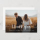 This wedding thank you card features an elegant script and photo. Customise text on the front and back of the card with any text of your choice.