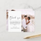 Express your heartfelt gratitude in timeless style with this Elegant Script Photo Wedding Thank You Card. Featuring refined calligraphy, a full photo layout, and minimalistic design elements, this card is the perfect way to thank your guests while showcasing a cherished moment from your big day. Ideal for modern, romantic, or classic wedding themes, it’s fully customisable with your message and photo.