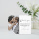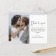 Express your heartfelt gratitude in timeless style with this Elegant Script Photo Wedding Thank You Card. Featuring refined calligraphy, a full photo layout, and minimalistic design elements, this card is the perfect way to thank your guests while showcasing a cherished moment from your big day. Ideal for modern, romantic, or classic wedding themes, it’s fully customisable with your message and photo.