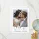 Express your heartfelt gratitude in timeless style with this Elegant Script Photo Wedding Thank You Card. Featuring refined calligraphy, a full photo layout, and minimalistic design elements, this card is the perfect way to thank your guests while showcasing a cherished moment from your big day. Ideal for modern, romantic, or classic wedding themes, it’s fully customisable with your message and photo.