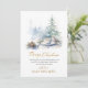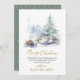 Modern Elegant Merry Christmas Script Tree Non Photo Christmas Cards. This festive Christmas Holiday cards features a watercolor Winter Forest Scene with Pine Tree and a „Merry Christmas” greeting text which is written in a nice Calligraphy hand lettered font script in gold. On the reverse side golden glitter snow or sparkling gold confetti on dusty green background. This festive Custom Personalised Christmas Cards are a great way to remind loved ones that you're thinking of them this Winter Holiday Season.