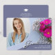 A unique custom photo graduation announcement card, featuring design elements of elegant handwritten style script with modern text. The graduates photo is enhanced by beautiful pink and white flowers on shades of dusty blue. The back of the card offers personalised text spaces for information about the graduation and future journey. You can easily customise the primary and text colours on the back of the card to suit your needs. To see more items like this, visit my store here at "www.Zazzle.com/LakeViewCardCo". Thanks