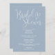 This dusty blue elegant script bridal shower invitation can be personalised with all your special event information and registry QR code on the reverse. Designed by Thisisnotme©