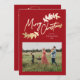 An elegant script red and gold foil branches 2 photo Merry Christmas holiday card with simple typography. Click the edit button to customise this design.