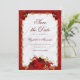 Elegant Script Red Gold Roses Floral Wedding Save The Date
