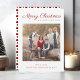 Personalised Elegant Script Red Stripes Christmas Photo Holiday Card.