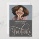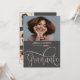 Commend that exceptional graduate with a striking, distinctive, and contemporary design. The term "graduate" is elegantly scripted in faux rose gold at the base of the template, set against a dark grey backdrop, leaving room for your graduate's name, date, and one photograph. On the flip side of the card, there's room for three additional photos and your party particulars. Personalise this layout with your own distinct details to craft a magnificent party invitation.
