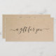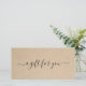 Elegant business gift certificate featuring "a gift for you" with swashes in a handwritten script font over a rustic brown paper background. The backside has the gift certificate form along with your business contact information. This simple and feminine design is great for a handmade craft business.
