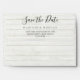 Coordinate these elegant script Save The Date rustic wood look pre-addressed envelopes with matching flat cards for your big announcement. The weathered white wood background is repeated on the inside of these stylish envelopes as well. Save The Date in an elegant handwritten script in black has a subtle light grey drop shadow behind it for added interest. Personalising your names and address on the back flap of these chic envelopes is easy using the text templates, but if you prefer using envelope seal or traditional return address labels instead, just clear/delete the sample text to erase it and create the perfect Save The Date envelopes printed just for you.