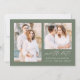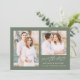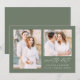 Announce your upcoming nuptials in style with our Elegant Script photo save the date card. The elegant save the date card features 2 of your engagement photos with "save the date" in a white modern calligraphy script against a sage green background. Personalise the simple save the date card by adding your names, wedding date, and wedding location. The minimalist save the date card reverses to a solid dark sage green background or a colour of your choice.
