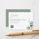 sage green watercolor greenery elegant script wedding details card. You can personalise the details and colours.