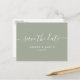 Elegant minimalist sage green wedding save the date postcards featuring a modern script font. Matching items available. Custom request welcome.