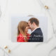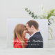 Bride and groom names in a beautiful script font - Simple Modern Save the Date Photo Card with your photo on the front and back. Elke Clarke© Romantic, trendy typography white script overlay design save the date engagement announcements you can personalise. For more style visit our shop at www.zazzle.com/monogramgallery.