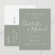 Featuring signature style names, this elegant silver sage save the date card can be personalised with your special wedding day information in chic white lettering. You can customise the background to your wedding colour theme. Designed by Thisisnotme©