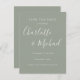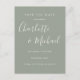 Featuring signature style names, this elegant silver sage save the date card can be personalised with your special wedding day information in chic white lettering. You can customise the background to your wedding colour theme. Designed by Thisisnotme©