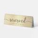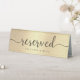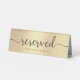 Make a memorable impression with our Elegant Script Shiny Metallic Gold Reserved Table Tent Sign. This simple yet elegant design features an elegant script for the text "reserved" against a faux brushed metallic gold background. It will definitely elegant the company's branding and impressed your customers.