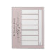 This is a perfect planner for busy families... easy to use and well organized. Each page rips off after use and the new page is ready for the next week. Clear print and personal monogram is fun.