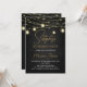 Modern design with strings of glowing lights over chalkboard background. Surprise Retirement Party invitation for men, women.