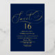 These chic and very stylish sweet 16 birthday party invitations features elegant real foil pressed typography wording on a simple navy blue background. Easily personalise the design with your own wording and find matching party items at www.zazzle.com/invitation_republic.