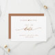 Announce your wedding date with this beautiful wedding save the date card. Modern hand written Script details in bronze terracotta faux foil in the front. Back with unique Save the Date stamp/monogram with couples names in white over an earthy terracotta background . Clean and simple style. rust terracotta and white design. Area for wedding website, more information or/and message for your guests (i.e. "Can't wait to see you there!").