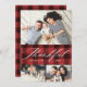 Featuring three of your photos paired with elegant and modern calligraphy script that says "Thankful". Personalise with your own photos, name, and text. The back features a black and red watercolor buffalo check pattern for an extra special touch. Be sure to visit the shop to see more Thanksgiving Holiday Photo Cards.