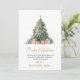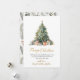 Modern Botanical Foliage Elegant Calligraphy Script Christmas Tree Non Photo Christmas Cards. This festive simple minimalist Christmas Holiday cards features a watercolor christmas tree with decoration gold balls, presents and a „Merry Christmas” greeting text which is written in a nice hand lettered font type in gold and white. On the backing watercolor winter botanical foliage greenery, berries, eucalyptus leaves, pine needles and branches. This festive Custom Photo Christmas Cards are a great way to remind loved ones that you're thinking of them this Winter Holiday Season.