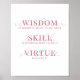 Elegant pink and white design of the motivational quote "Wisdom is knowing what to do next, skill is knowing how to do it, virtue is doing it" set in modern typography.