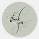 Elegant Script Typography Thank You Sage Green Classic Round Sticker