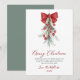 Modern Elegant Calligraphy Script Watercolor Botanical Pine Branches Berries Christmas Non Photo Christmas Cards. This festive simple minimalist Christmas Holiday cards features a watercolor pine branches with red berries and bow. With a „Merry Christmas” greeting text which is written in a prety airy hand lettered font type in red. On the reverse side dusty green background. This festive custom Christmas Cards are a great way to remind loved ones that you're thinking of them this Winter Holiday Season.