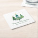 Elegant Script Watercolor Christmas Trees Square Paper Coaster