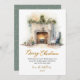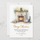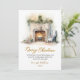 Elegant Script Watercolor Fireplace Christmas Holiday Card