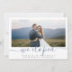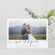Modern script "we eloped" in blue colour, with couple's photo, simple and elegant. Great photo wedding announcement cards.