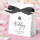 Add your custom names/date to this chic damask black and white wedding favour gift box with elegant "For The Wedding Of" script.