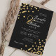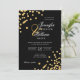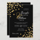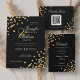Elegant Script Wedding Gold Confetti QR RSVP Black Invitation