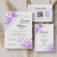 Elegant Script Wedding Purple Floral w/ QR RSVP Invitation