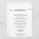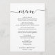 Elegant wedding reception dinner menu with "menu" in a chic calligraphy script with swashes, your customised menu in simple typography, your first names joined by a heart and your reception date.