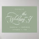 This sage green wedding welcome sign (poster) featuring elegant and romantic swirly calligraphy lettering with a formal script. For more advanced customisation of this design, please click the BLUE DESIGN TOOL BUTTON above!