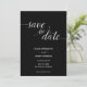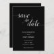Save the Date in an elegant font and your details below, we show on a black background, but you can change to any colour! ADD PHOTOS and/or more details on the back, too. Fonts can be changed, just click the CUSTOMIZE further link.