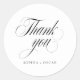 wedding thank you stickers, wedding favour labels personalised, minimalist wedding thank you sticker, elegant wedding favour stickers, calligraphy thank you label wedding, modern wedding sticker round, black and white wedding favour labels, custom wedding thank you stickers, wedding envelope seal sticker, simple wedding favour sticker