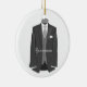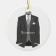 Elegant Script Wedding Tuxedo Suit Groomsman Ceramic Tree Decoration