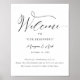 Elegant welcome wedding sign with beautiful modern handwritten calligraphy details and the ability to add a message on the bottom. 8" 10" is simply our default size, and signs are available in a variety of sizes. Ability to change text fields to fit any other event and add any message you like. Ability to change white "background-colour" to another colour by selecting "customise further". "IMPORTANT NOTE: This sign is in premium poster paper style, easy to frame or glue/staple to inexpensive MDF or foam board for display. If you prefer this sign prepared for display already on a foam board, please follow these easy steps: on this sign product page, scroll up, until you see a section with images called "Transfer design to a product". Use the arrow on the images to look at all the options, until you reach the "Foam Boards" option. Click on it, and it will transfer the design into a foam board for you. Initially, sometimes it transfers the design into a very big foam board size, nevertheless, you can change the sign into the size you need right there on the product page and even see how it looks already in a stand. When you add this design to your shopping cart, it will tell you the back side is in black. Don't worry about it, as this only means that the back of the sign will be white. If you need help, please send me a message and I'll get back to you as soon as possible". Part of our "Modern Elegant Wedding and Events Signage" collection with a variety of coordinating products available. Dimensions of sign in demo photo with stand: 18" x 24"