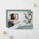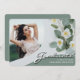 A unique custom photo graduation announcement card, featuring design elements of elegant handwritten style script with modern text. The graduates photo is enhanced by beautiful white and yellow flowers on a stylish sage green background. The back of the card offers personalised text spaces for information about the graduation and future journey. You can easily customise the primary and text colours on the back of the card to suit your needs. To see more items like this, visit my store here at "www.Zazzle.com/LakeViewCardCo". Thanks