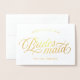 This elegant script Will You Be My Bridesmaid card features text in gold foil on the front.