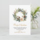 Modern Elegant Calligraphy Script Wreath Non Photo Christmas Cards. This festive simple minimalist Christmas Holiday cards features a watercolor greenery wreath and a „Merry Christmas” greeting text which is written in a nice hand lettered font type in gold and white. On the reverse side golden glitter snow or sparkling gold confetti on dusty green background. This festive Custom Photo Christmas Cards are a great way to remind loved ones that you're thinking of them this Winter Holiday Season.