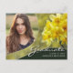 A unique custom photo graduation announcement postcard, featuring design elements of elegant handwritten style script with modern text. The graduates photo is enhanced by beautiful yellow flowers on a forest green background. The back of the card offers personalised text spaces for information about the graduation and future journey. To see more items like this, visit my store here at "www.Zazzle.com/LakeViewCardCo". Thanks